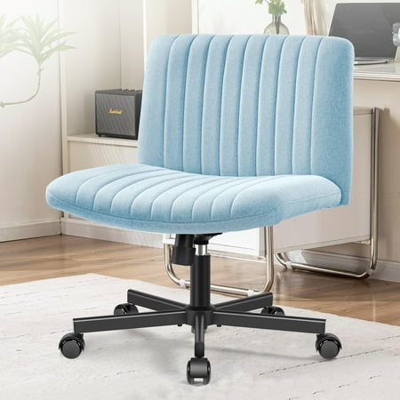 If you specifically want a true light blue pastel color, the Homy Casa is the only chair here that delivers exactly that — just note the 220 lb weight limit. For a more versatile blue-toned chair with better specs, the BTMWAY velvet looks great in a home office and handles 300 lbs. The COOLHUT armless is the play for cross-leg sitters who need a wide seat.