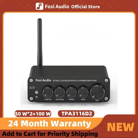 The Fosi Audio BT30D is a powerful 2.1 channel audio amplifier that delivers up to 50 Watts x 2 + 100 Watts of continuous power. Featuring Bluetooth 5.0 technology for seamless wireless audio streaming, this compact amplifier is designed for both home and outdoor use, compatible with passive...