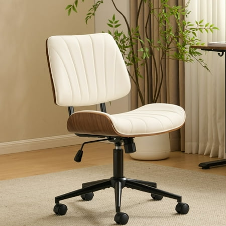 Introduction: You'll love how this unique desk chair adds a stylish touch to your workspace or vanity. The sculpted curved wood back and seat create a standout look, while the soft padded surface keeps you comfortable during long sessions. You'll appreciate the smooth 360° swivel and adjustable...