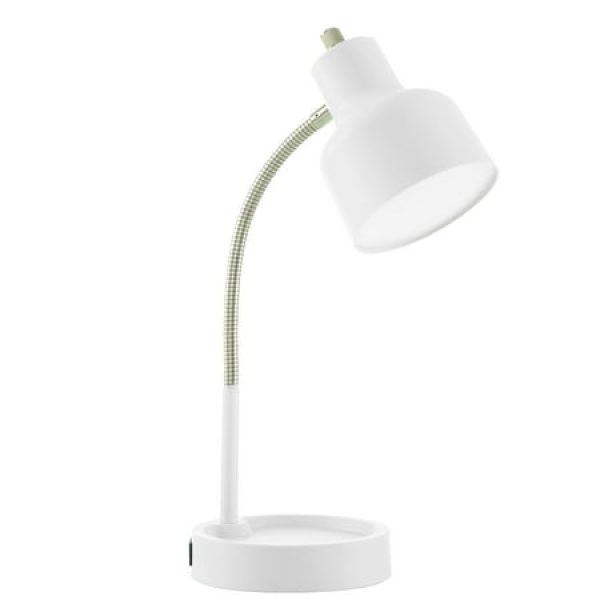 The Mainstays 17-Inch LED Desk Lamp is the most affordable functional desk lamp available — flexible gooseneck arm, a catch-all base tray, and a built-in AC outlet make it a practical pick for tight budgets.